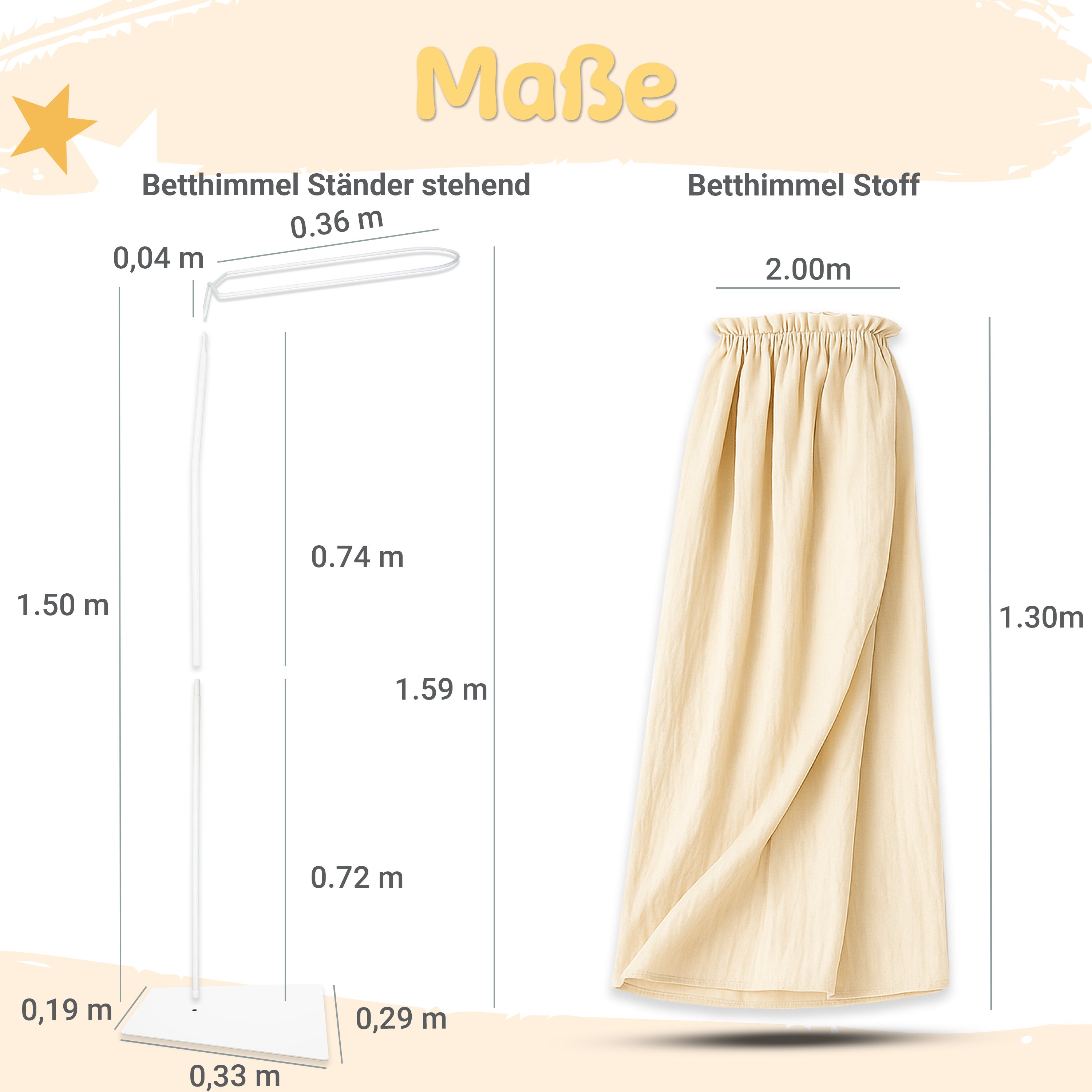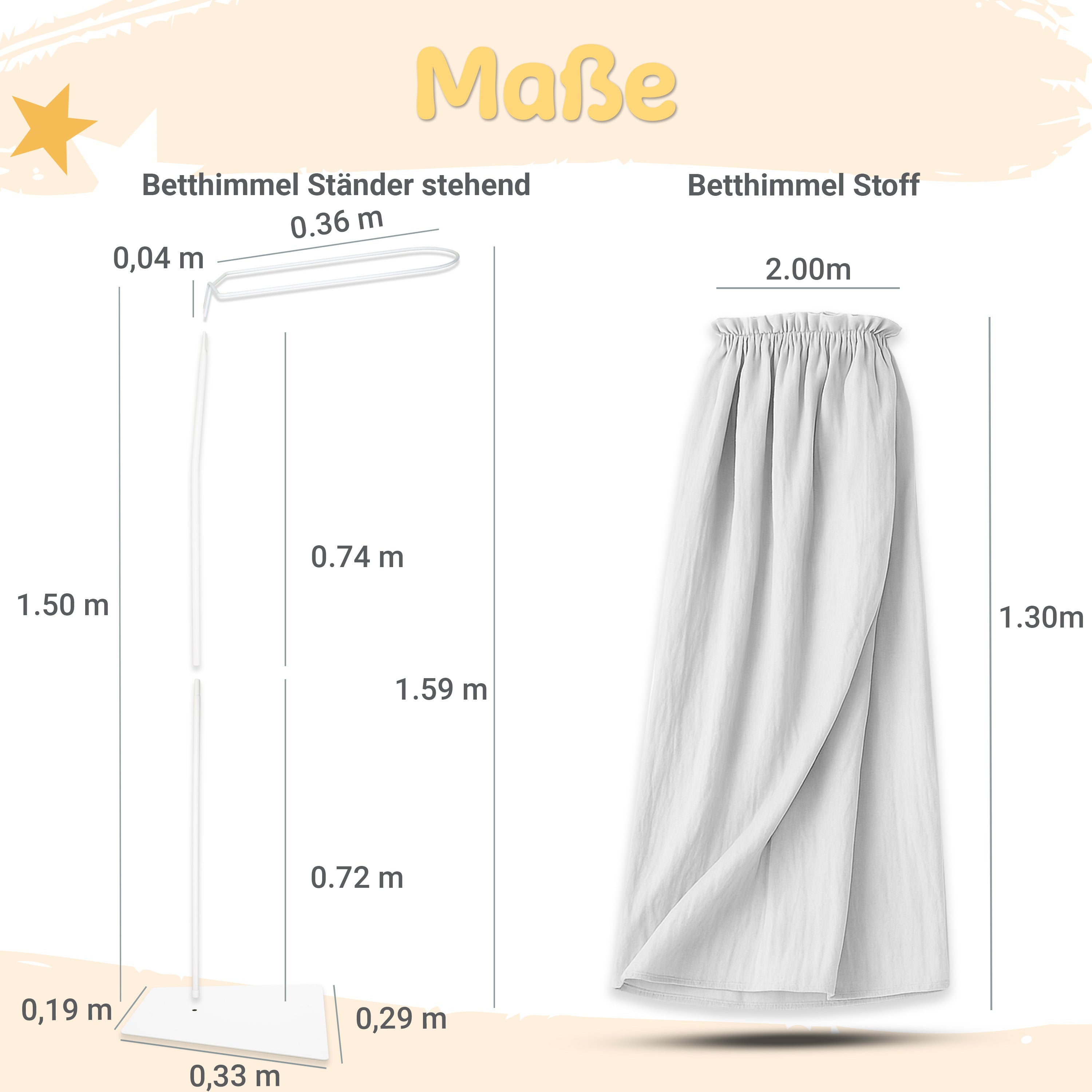 - Stoff einzeln: Betthimmel-Stoff ohne Ständer – zum Anbringen an vorhandenen Halterungen.